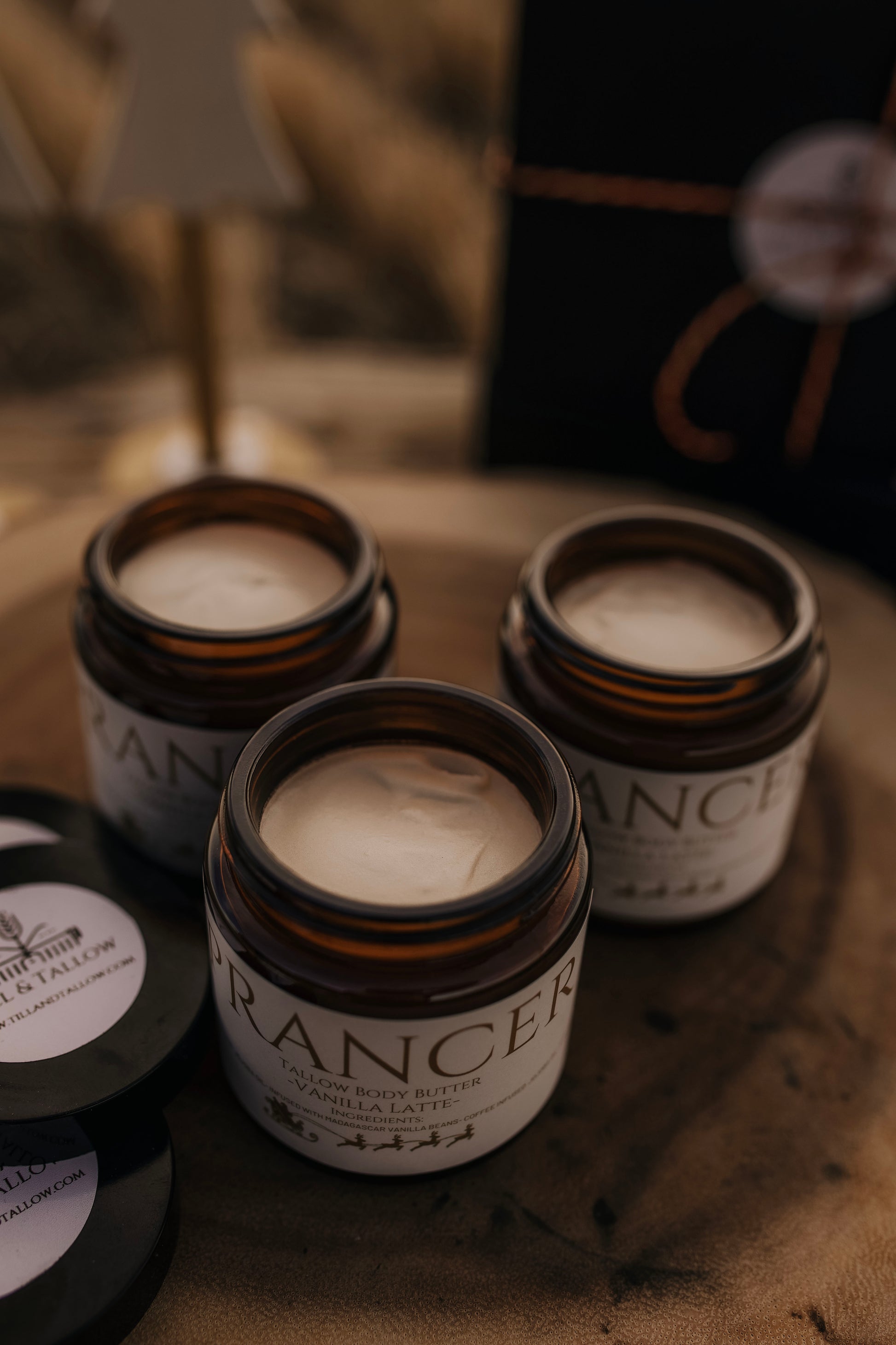 Our signature Tallow Body Butter is where tallow skincare meets minimalist luxury. With a 4:1 ratio of grass-fed beef tallow to vanilla-infused jojoba oil, it’s light, rich, and melts into the skin like butter — because it is.